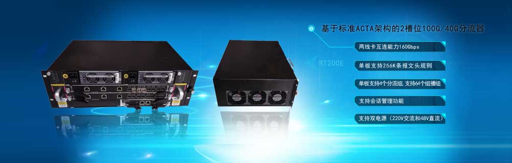 RT200設(shè)備是一款支持網(wǎng)絡(luò)行為審計(jì)系統(tǒng)、網(wǎng)絡(luò)內(nèi)容審計(jì)系統(tǒng)和入侵檢測系統(tǒng)的高速流量預(yù)處理平臺。